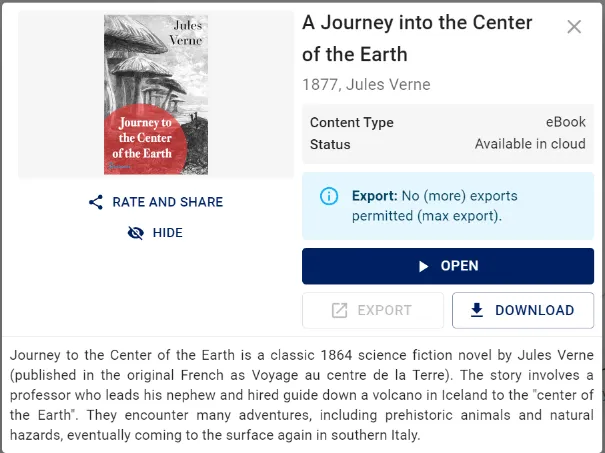 Content types which can not be streamed, like e-books, get automatically download by opening them.