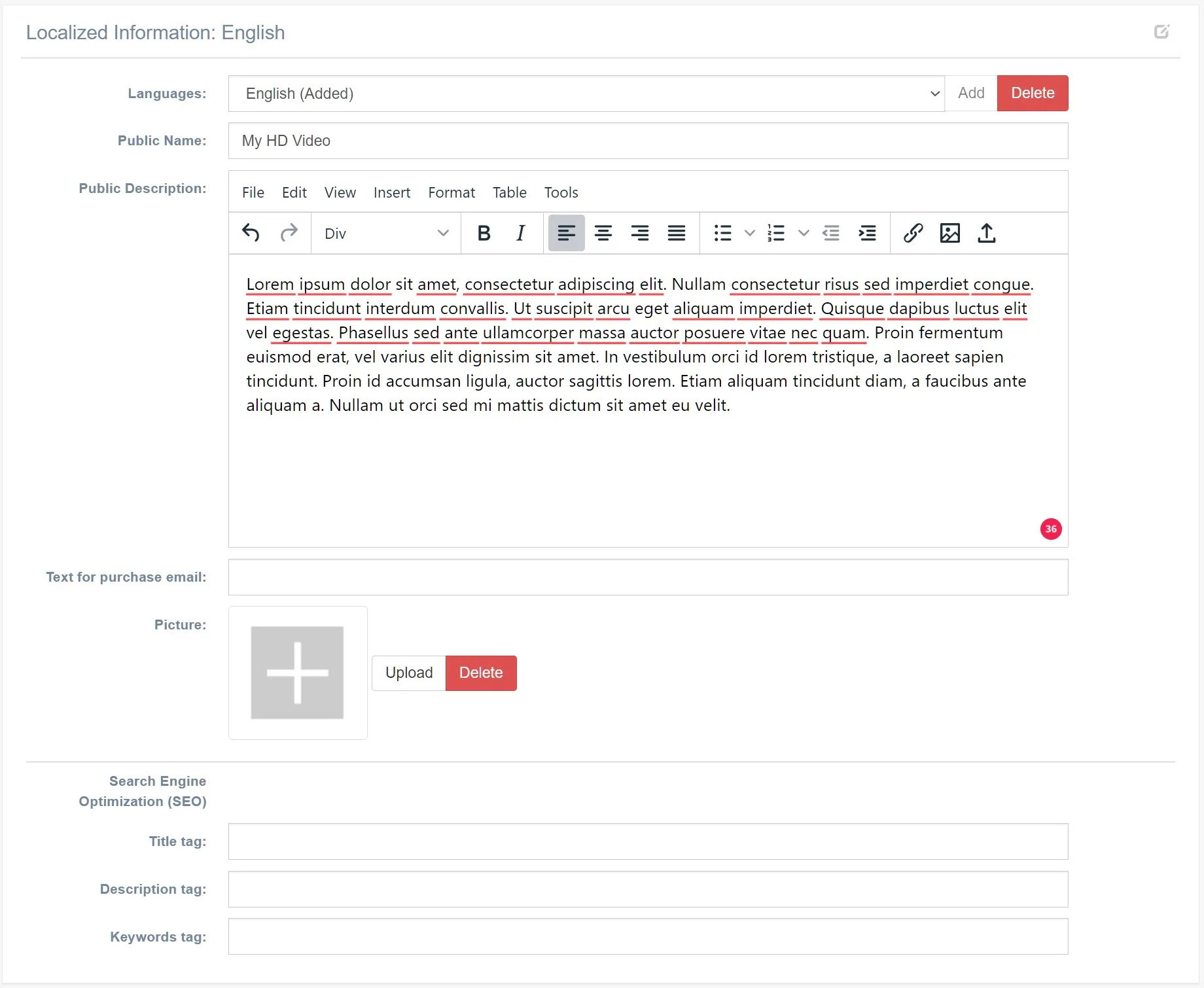 We highly recommend uploading a cover image under “Localized information”. Also, in case you are not use the Flickrocket shop system, the picture will appear whenever the customer receives a list of their assigned content.