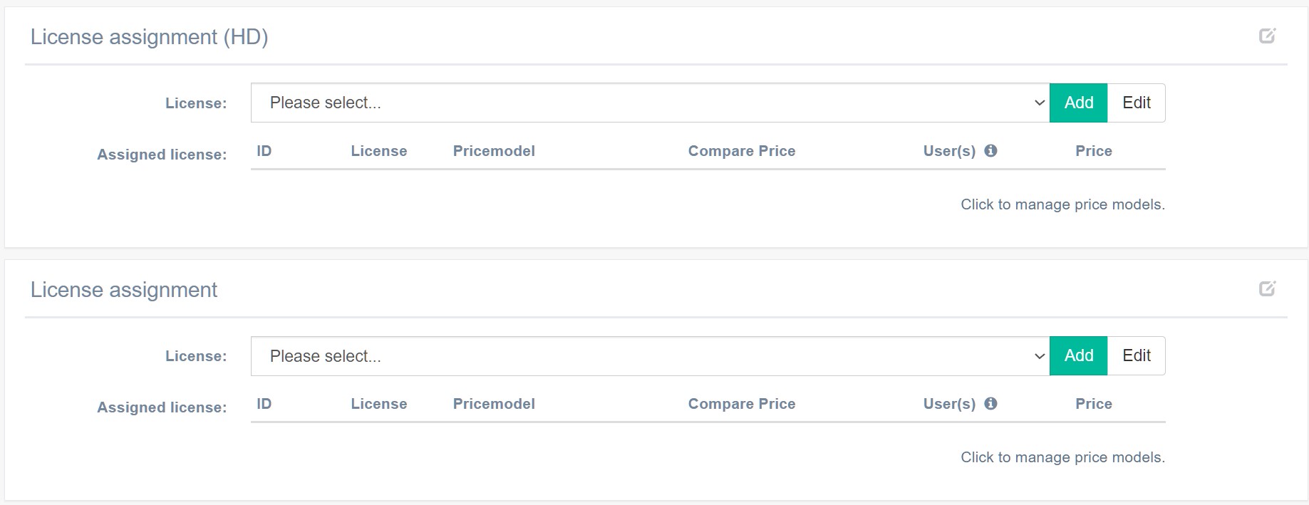 Select a license of your choice, and click 'Add'. Then, choose a price model for the selected license.