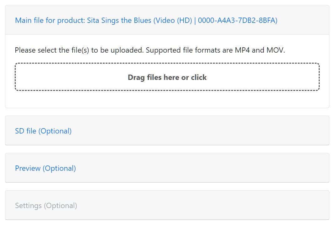Audio products accept mp3 files, and E-Books accept a PDF as a preview.