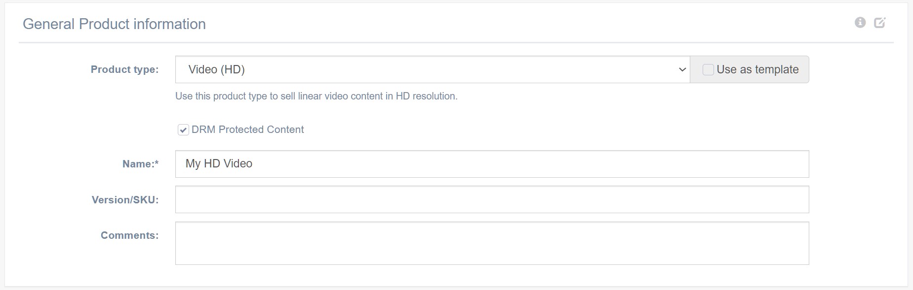 Select the Product type. The selected product type specify the content type you can later upload for this product. After the saving, this selection can not be edited.