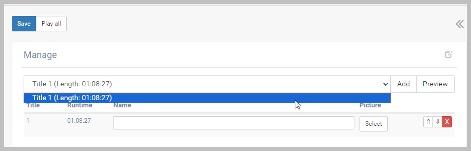 You can add chapter points for video products uploaded as MP4 or MOV files. You may also be able to add chapter points that were uploaded from a DVD, but that is dependent on the way the DVD was authored. If the DVD was authored with all video in a single title, you can add chapters. If the DVD was authored using multiple titles, you cannot add chapters. You can tell if the DVD was authored using one title or multiple titles by editing the video product, going to the Meta Information section, and clicking the Video Titles/Edit button. If you see only a single title in the Titles dropdown, the DVD was authored in a single title and chapter points can be added.