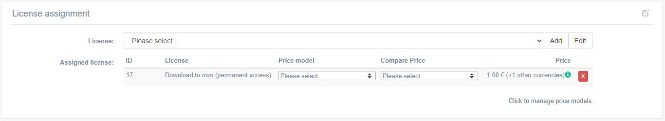 Every product can be offered under different licenses such as ‘rental/VOD’ or ‘permanent access’. Which license types are offered for a product is specified when the product is uploaded and can be edited in the Product settings on the website.
