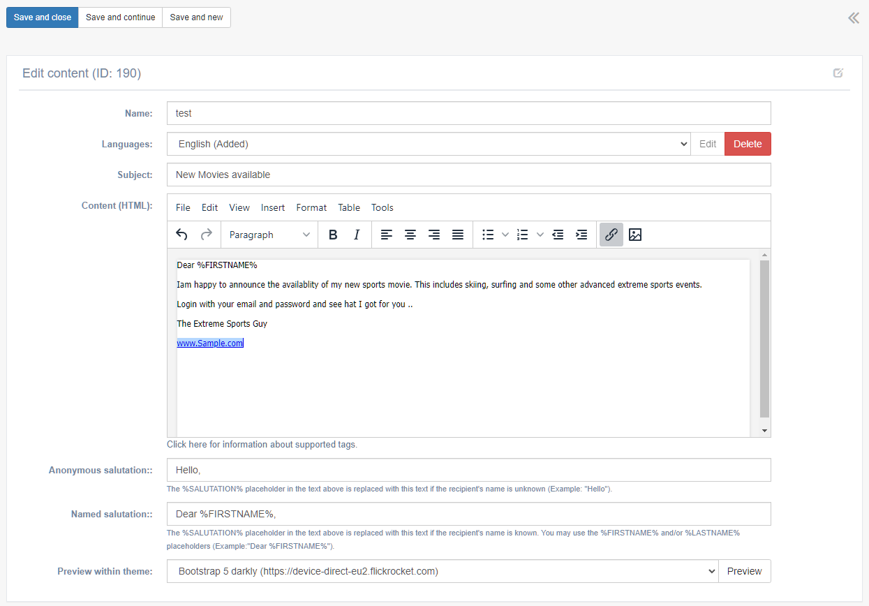 Once you entered everything you can preview it in a theme of your choice and save the new content.