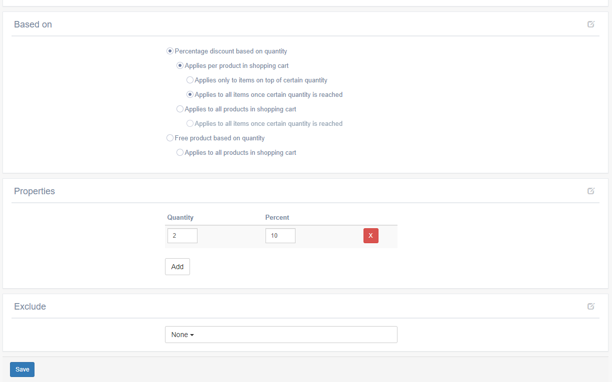Once you have made this selection, you can enter which discounts you want to give for certain quantities.