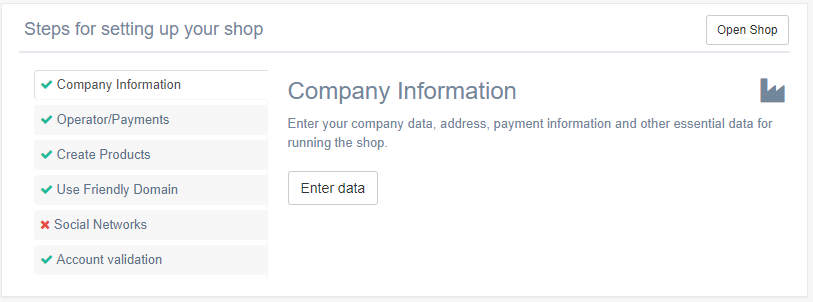 Once you have uploaded your content and made all settings, your shop is ready to go. You see the current status on the first page after you login.