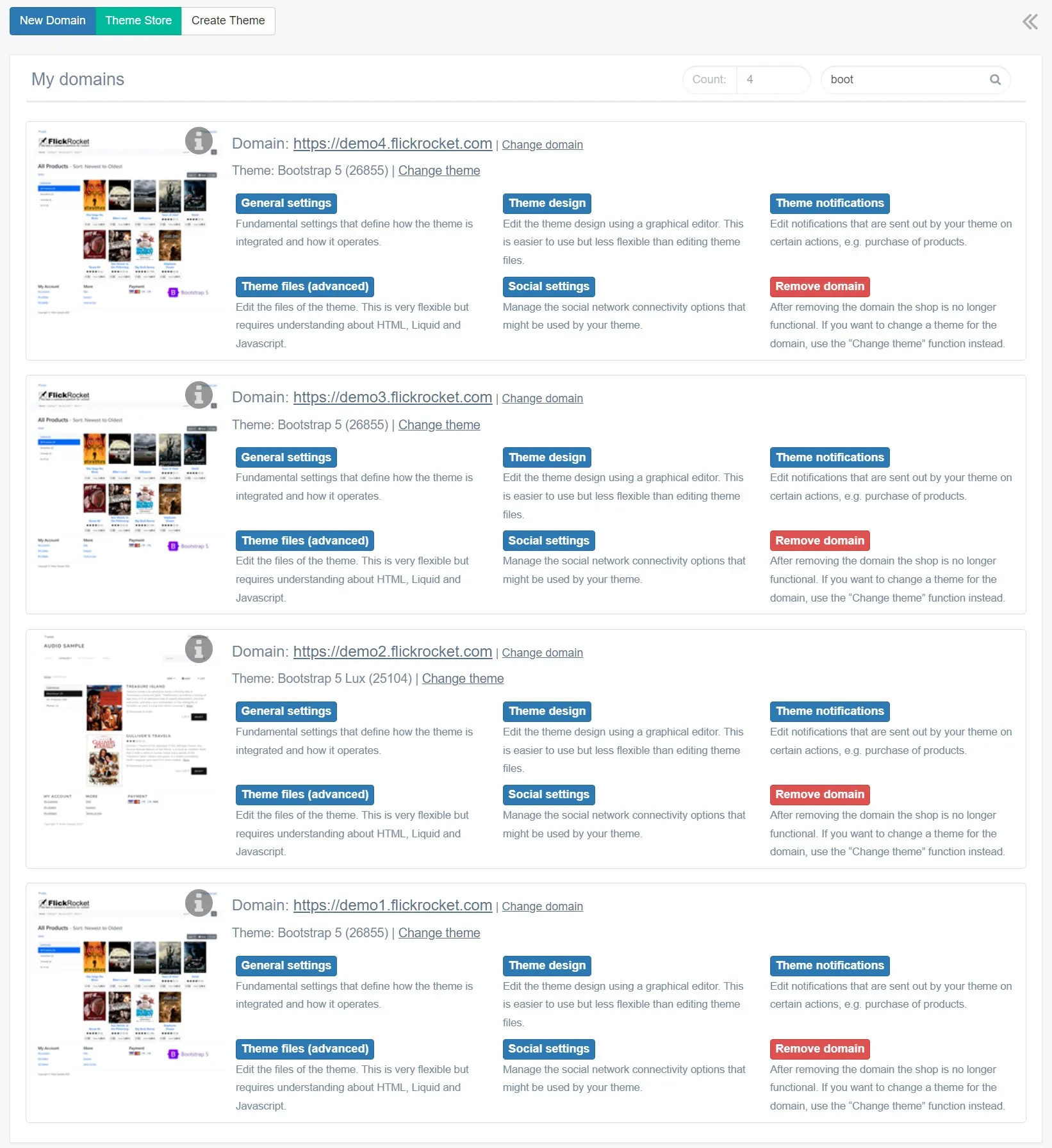 To manage Themes and Domains, it is important that you understand what a domain and a theme in the context of Flickrocket actually is.