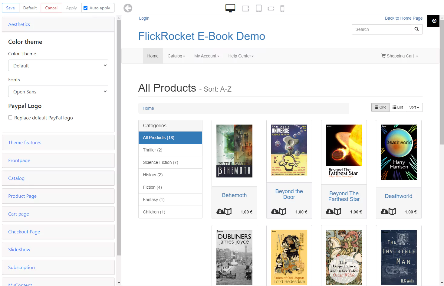 The default option guides the user to the Details page of the shop item within the FlickRocket web shop using the theme the customer has purchased the item.