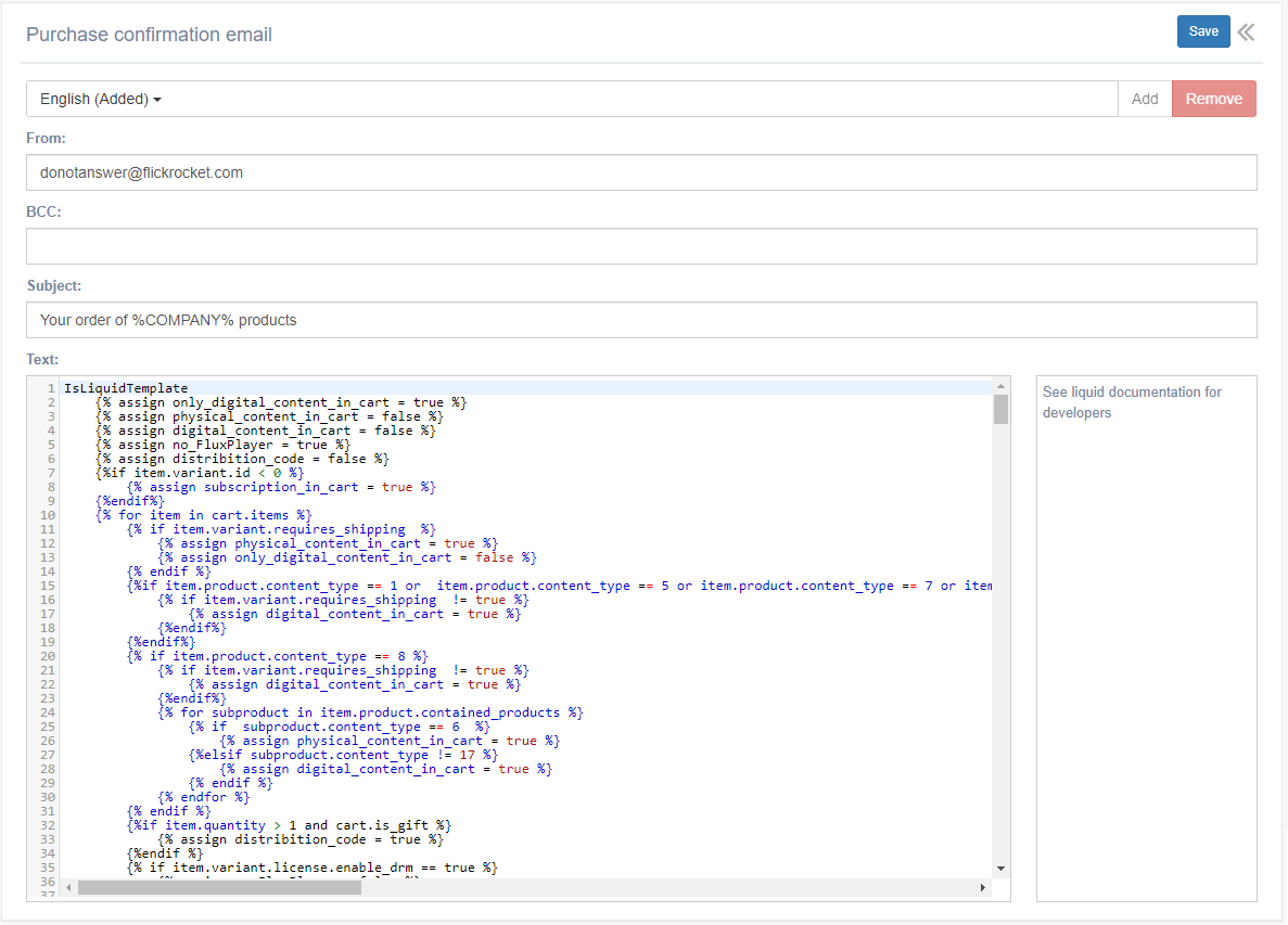Each template can be different per language. If a language is not defined, the system will use the English document.